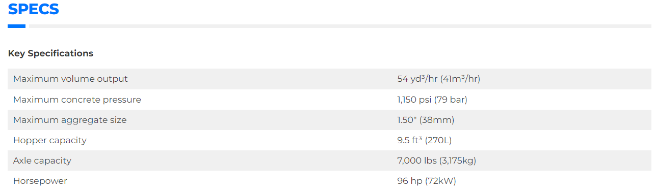 The Putzmeister TK40 is the smallest pump we have despite that it handles the jobs really well. This pumps is versatile choice for contractors who need a reliable concrete pump that can handle diverse pumping tasks while fitting into tighter job site constraints. In short this little guy is particularly favored for small-sized projects.